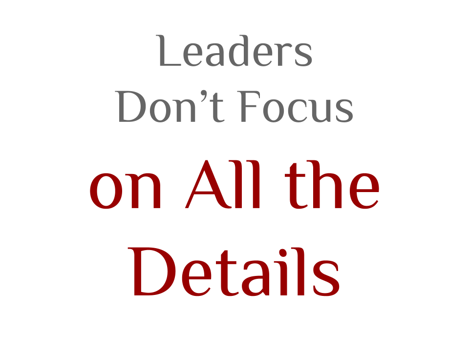 But leaders need to separate the details important to them from all the rest. Leaders need to become comfortable with letting others manage details in areas out of the leader’s focus.